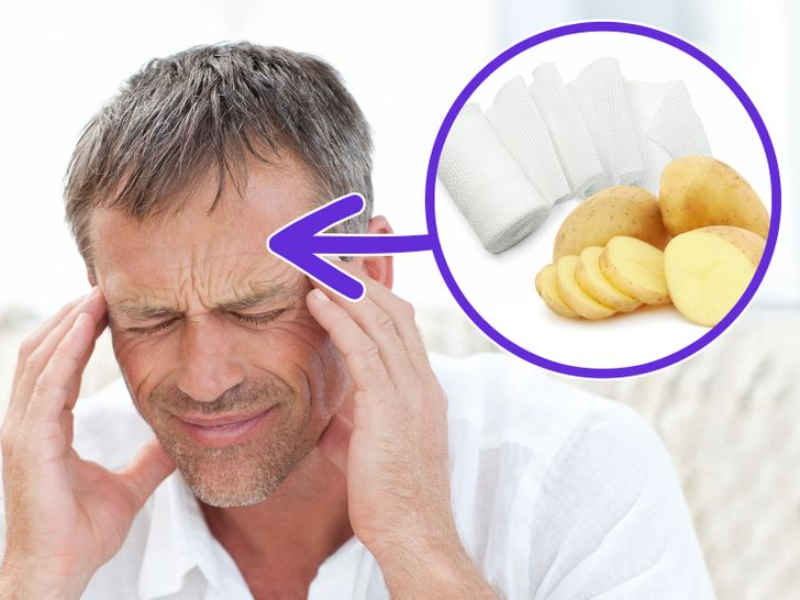 Headaches can interrupt your daily routine, but potatoes present a natural and medication-free solution. Cut a raw potato into slices and position the slices on your forehead and temples. Hold them in place with gauze or a soft cloth. Recline, close your eyes, and unwind as the potato's cooling characteristics help diminish the pain.