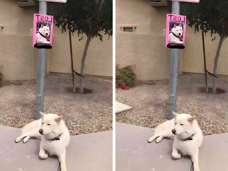 This dog isn't missing—he's simply not prepared to return home. In this appealing photo, a fluffy white puppy relaxes casually underneath his own "Lost" poster. The positive news? He's obviously not gone. The negative news? He couldn't be less concerned!