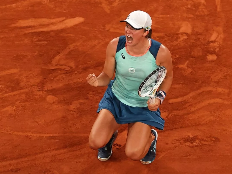 This moment of pure joy after a victory is what every athlete dreams of. The culmination of hard work, dedication, and perseverance is written all over her face. This image is a celebration of the human spirit and the triumph of effort over adversity.