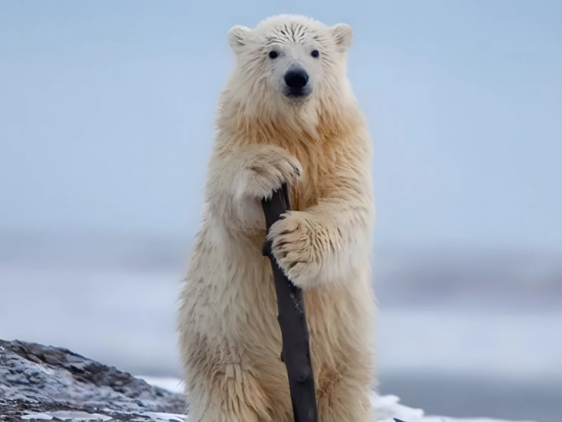 In the icy vastness of Alaska's winter terrain, photographer Khurram Khan presents us with an unlikely comedian: a spirited polar bear cub. While one might expect this cub is simply resting in the frozen wilderness or hunting for its next snack, it has different plans.