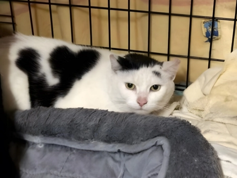 This cat features an exceptional fur pattern that stands out, resembling a design unlike any heart-shaped tattoos commonly seen.