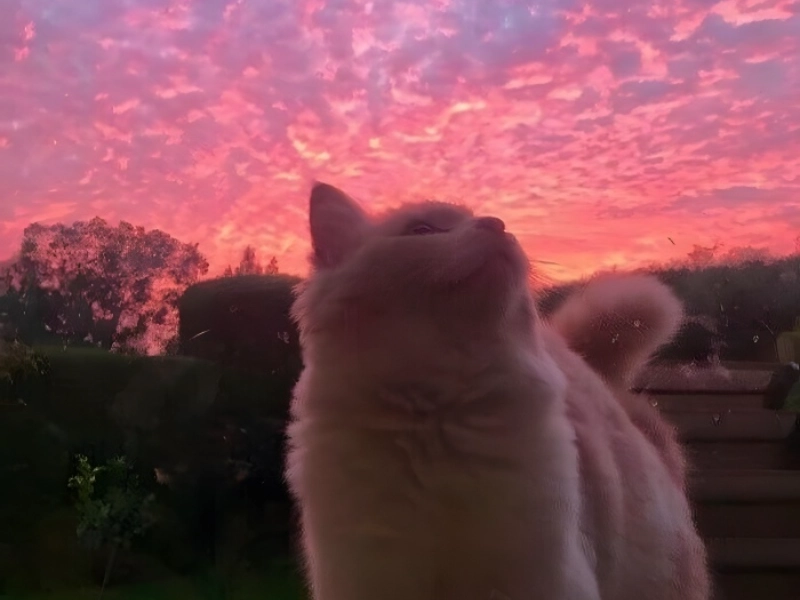 If beauty is your priority, this photo might be the winner. The stunning sunset blends colors into a breathtaking backdrop, making you wish you were there to witness it in person. Adding a beautiful cat lounging in the foreground enhances the scene, creating an almost cinematic moment. The cat's calm demeanor and relaxed posture perfectly complement the sunset's beauty. It's hard to decide which is more majestic—the serene cat or the vibrant sunset. If you're a cat lover, you'll likely lean toward the cat, and we might agree. This photo reminds us of life's simple pleasures, like enjoying a sunset with a beloved companion.