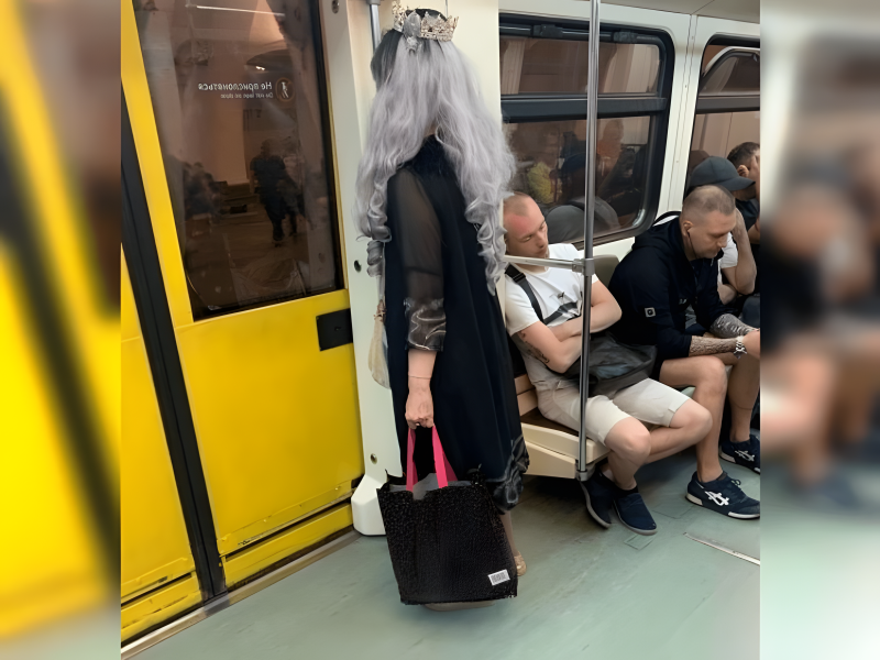 After a grueling day, the queen heads to her fortress—her majestic posture undeniable, even in a jammed train. She sits with pride, a symbol that poise and strength can thrive amid the busiest settings.